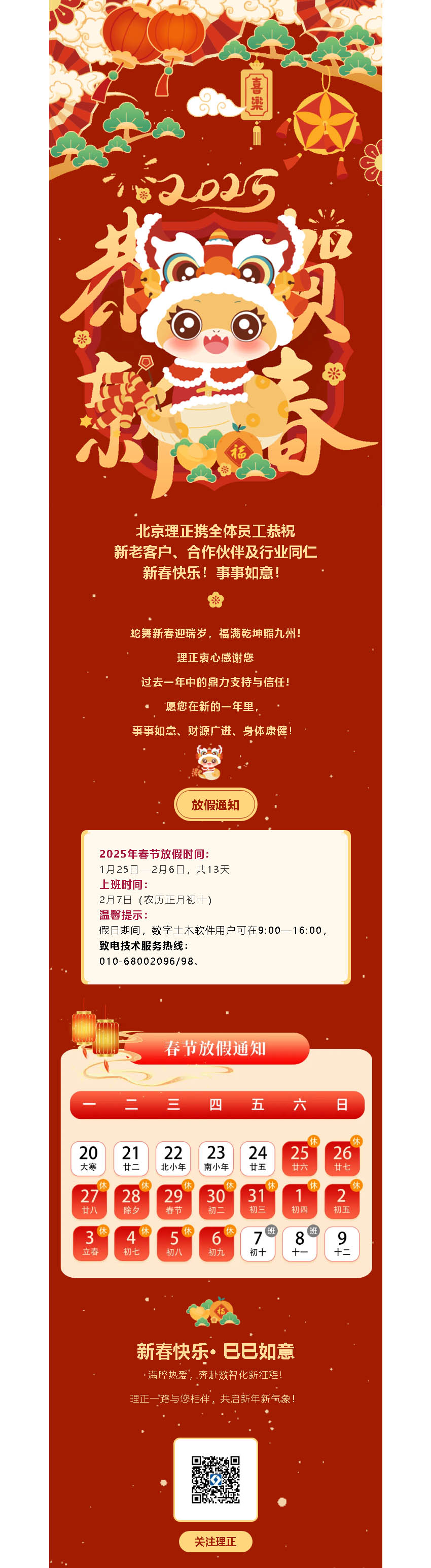 放假通知丨理正軟件祝大家新春快樂!蛇年展宏圖,祥瑞伴新程!