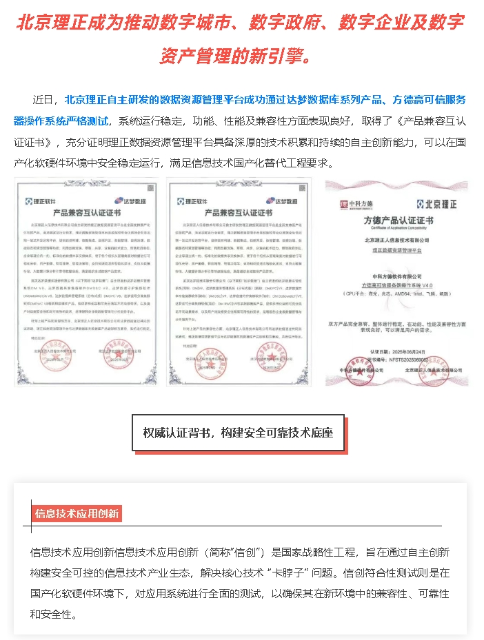 理正數(shù)據(jù)資源管理平臺(tái)通過(guò)信創(chuàng)認(rèn)證,自主創(chuàng)新能力再獲權(quán)威認(rèn)可!